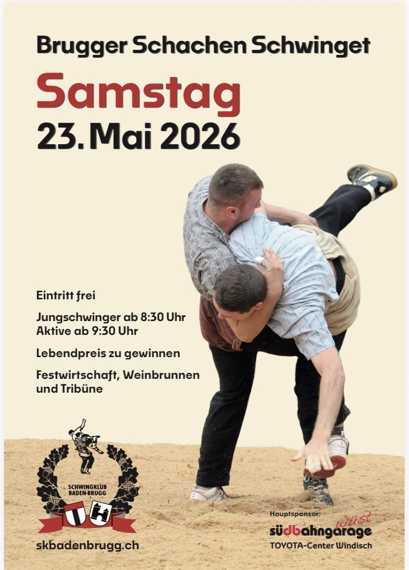 Wer Crown und seine Mutter in natura sehen will, sollte am Pfingstmontag, 20.05.2024 nach Brugg in Schachen kommen. Es werden ca. 120 Jungschwinger und 60 Aktivschwinger erwartet. Beginn Jungschwinger ist um 08.30 Uhr. Für das leibliche Wohl ist mit Festwirtschaft und Weinbrunnen gesorgt. Der Eintritt ist frei.